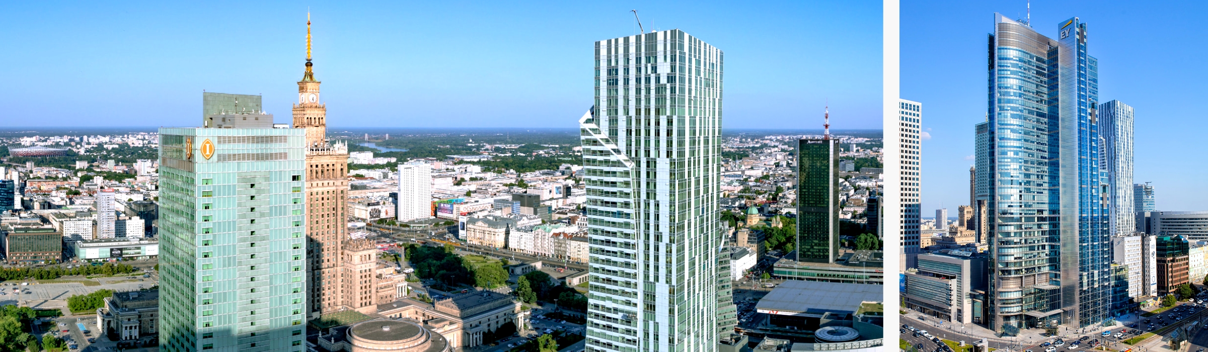 Rondo 1 ze spektakularnym widokiem na panoramę Warszawy.